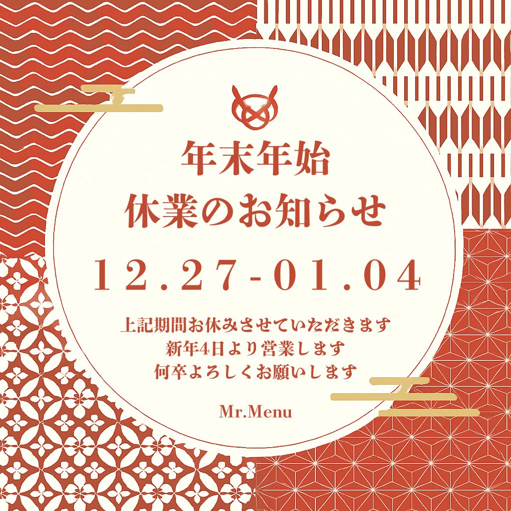 休業日:2025年12月27日(土)〜 2026年1月4日(日)